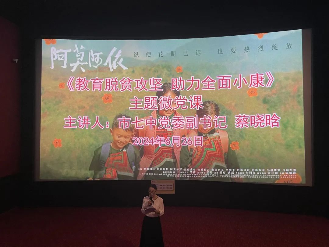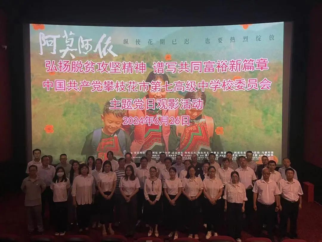 为深入贯彻落实习近平总书记关于教育扶贫的战略思想和指示精神,激励广大教师不忘初心、牢记使命,近日,市七中党委组织40余名党员教师前往攀枝花横店影城观看脱贫攻坚题材电影《阿莫阿依》,为党员们上了一堂生动的电影党课。本次活动还邀请了部分党外教师参与。