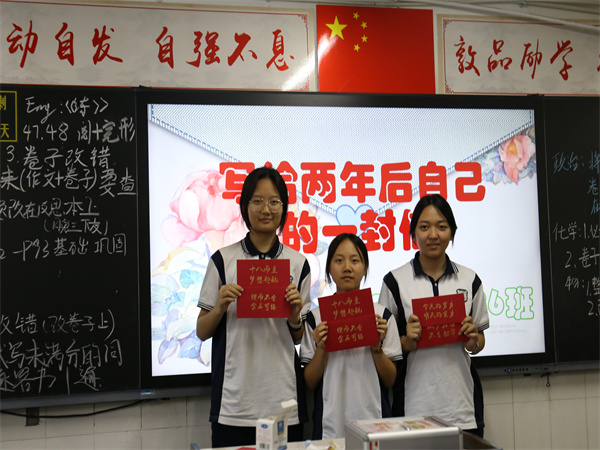 班主任老师对同学们说:“这封信是时光留给青春的印记,它承载着同学们的梦想,让同学们始终能够不忘自己的火热初心。”