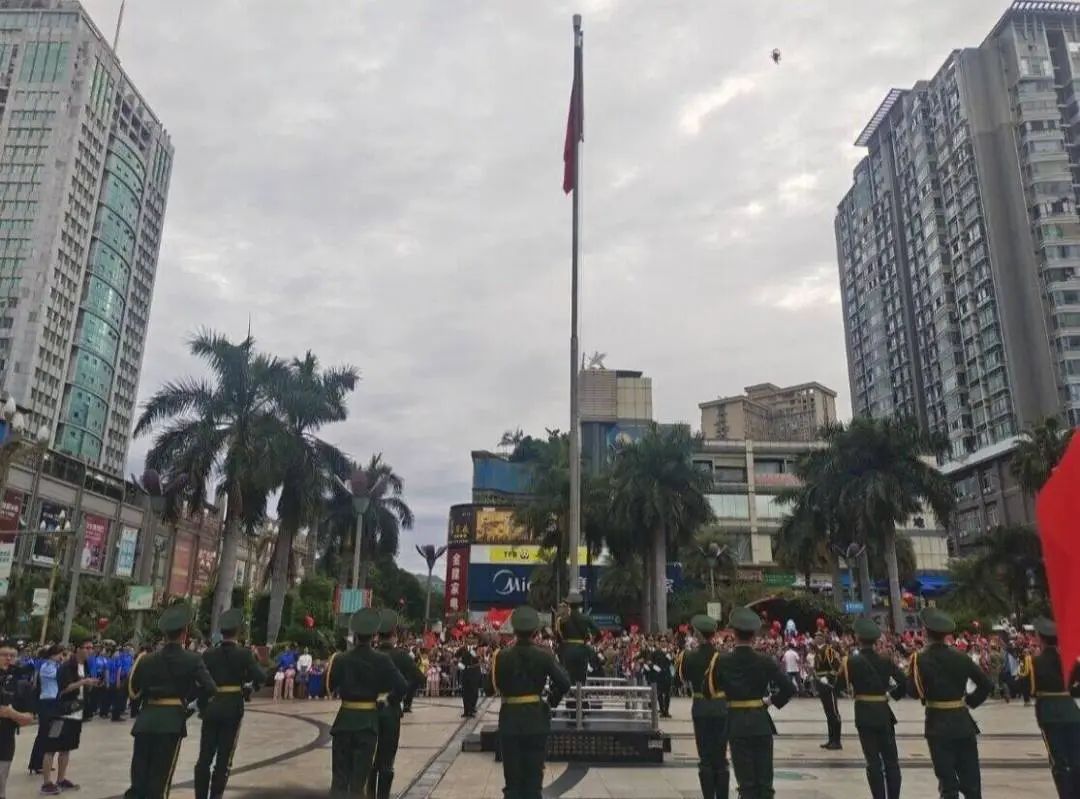 2024年10月1日,同学们在市中心广场观看国庆节升旗仪式,另有部分同学在居住地参加升旗仪式。国旗在国歌声中缓缓升起,同学们站在国旗下,感受着那份庄严与肃穆,感受着中国用了75年走出的繁华富荣之路。