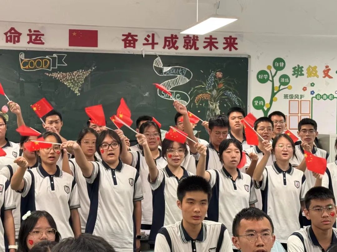 与此同时,高二年级还组织了“唱响红歌迎华诞”活动,《我和我的祖国》《我爱你,中国》《歌唱祖国》《爱我中华》等一首首耳熟能详的爱国主义歌曲回荡在七中校园上空。歌声激昂嘹亮,响彻云霄,不仅唱出了对革命先烈的缅怀之情,更唱出了新时代青年对祖国的无限热爱和坚定信念。歌声中,学生们仿佛穿越时空,与革命先烈们同呼吸、共命运,感受着那份为了国家独立和民族解放而英勇奋斗的伟大精神。