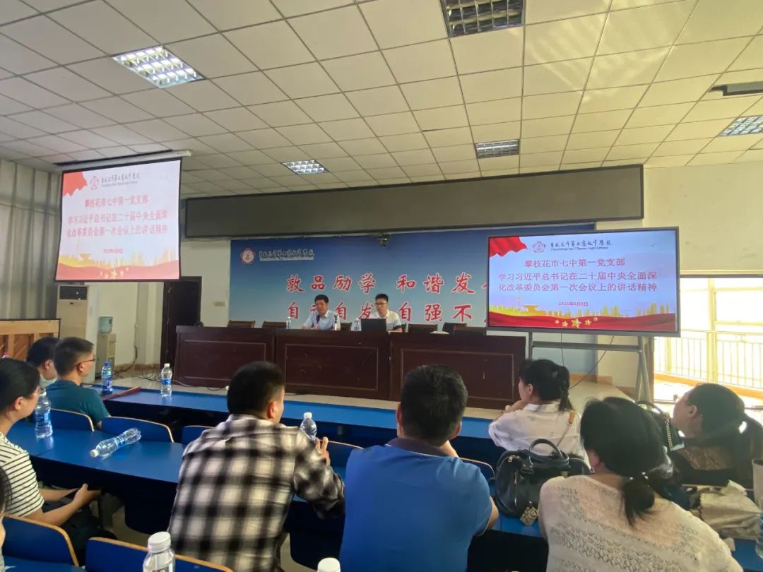 为深入学习贯彻党的二十大精神,5月6日下午,攀枝花市七中第一党支部全体党员在花城校区四楼会议室开展主题党日活动。会议由第一党支部书记杨雷主持,学校党委委员、副校长牟厚均及支部全体党员参加会议。
