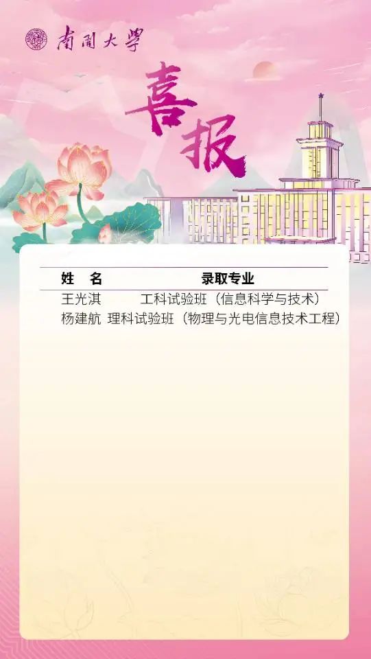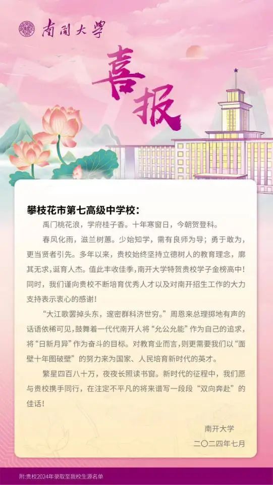 >>南开大学向我校发来喜报