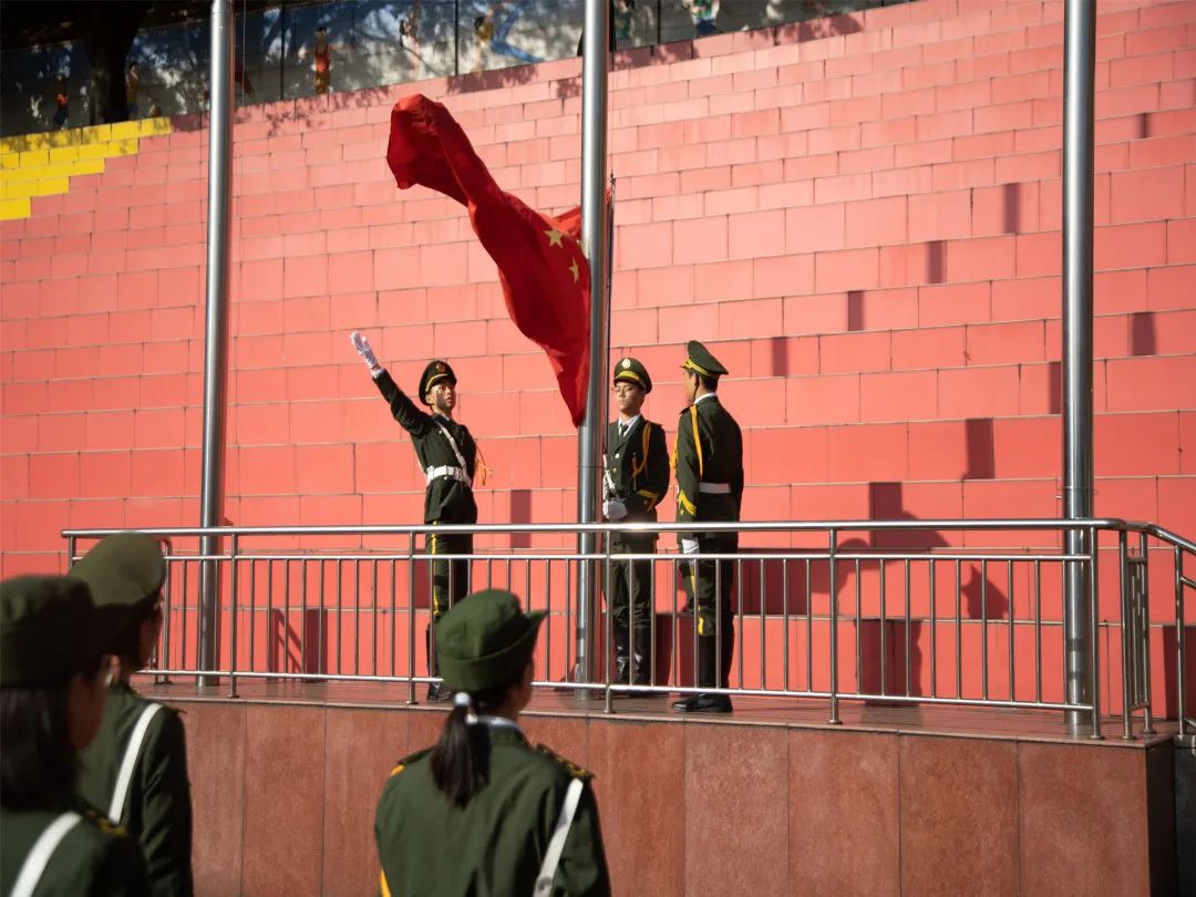 在秋日的暖阳下,我校于10月21日上午举行了隆重的升旗仪式,随着五星红旗的冉冉升起,全体师生齐声高唱国歌,嘹亮的歌声回荡在校园上空。
