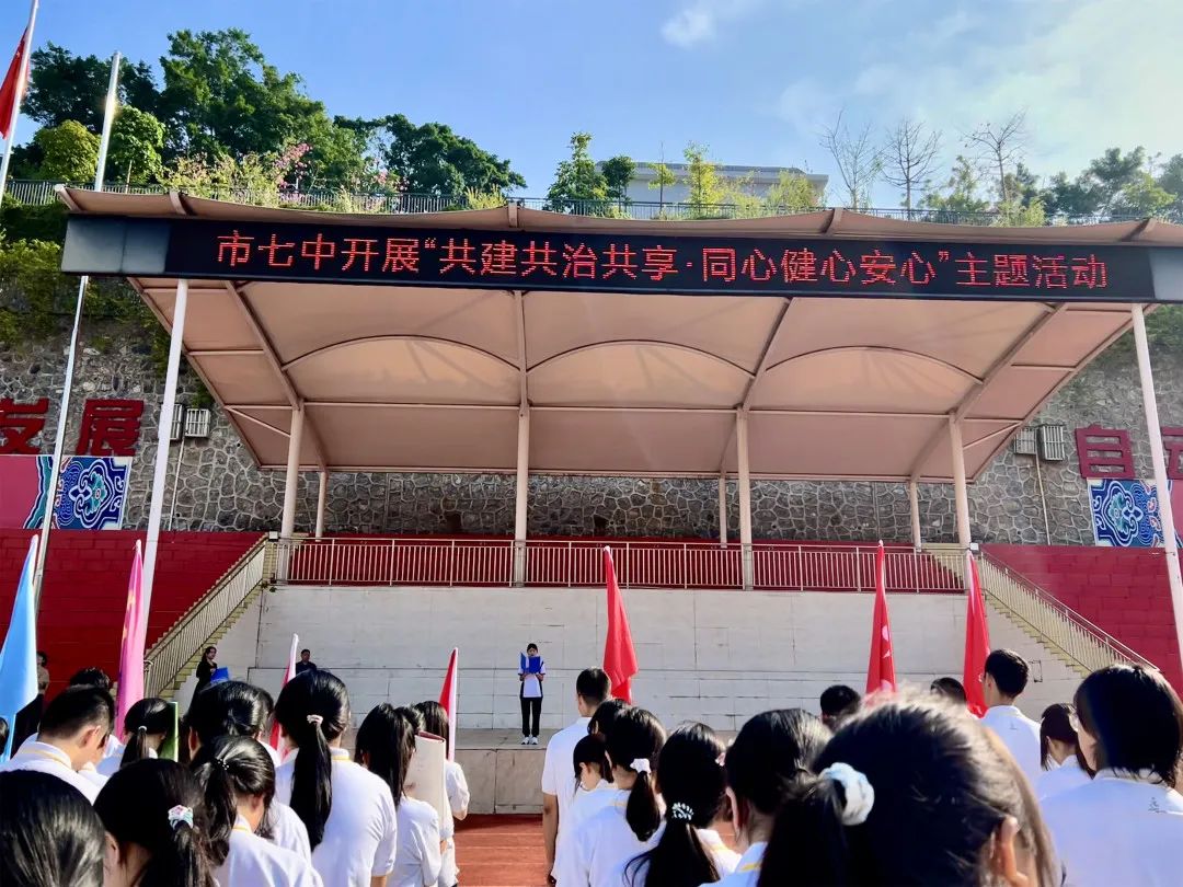 西城高一年级25班心理委员祝江澜与花城高一3班心理委员罗积萱作为学生代表,在国旗下发表了题为“共建共治共享·同心健心安心”的讲话,将全场的目光聚焦于心理健康这一重要议题上。两位心理委员首先提及了每年10月10日的世界精神卫生日,强调了这一日子对于提升公众心理健康意识、消除心理健康歧视的重要意义。然后他们深入浅出地阐述了心理健康的内涵,指出心理健康不仅仅是无心理疾病的状态,更是一种情感稳定、自尊自信、积极应对生活挑战的综合能力。他们鼓励同学们要正视心理健康问题,认识到保持心理健康对于个人成长和社会和谐的重要性。