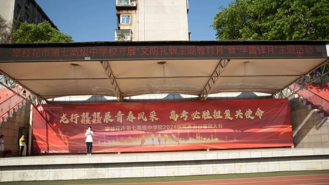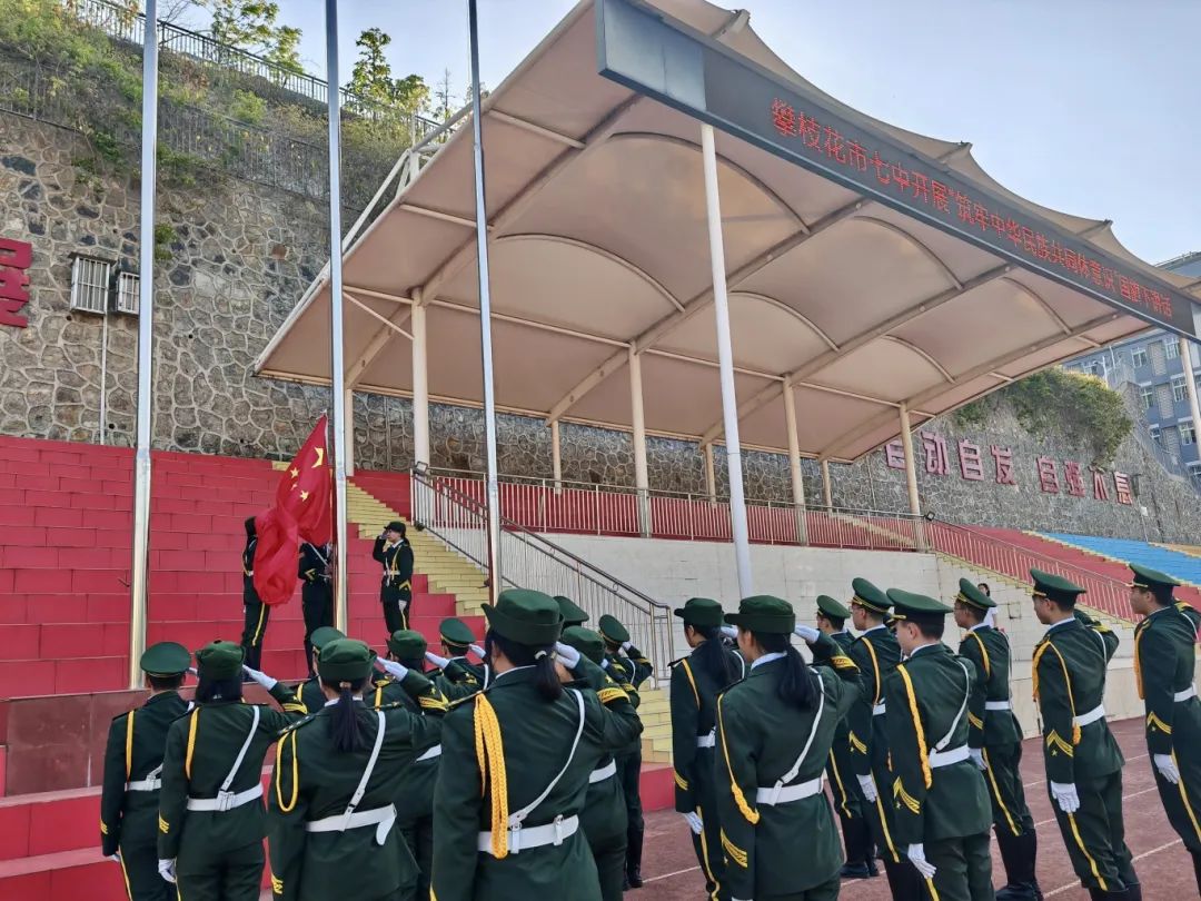攀枝花市第七高级中学于3月11日清晨举行了庄重的升旗仪式。全校师生齐聚操场,共同见证国旗的冉冉升起。伴随着雄壮的国歌声,学生们整齐列队,神情肃穆,齐声高唱国歌,表达对祖国的热爱与敬意。