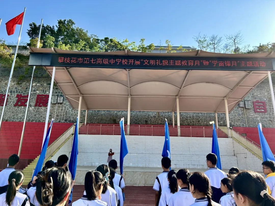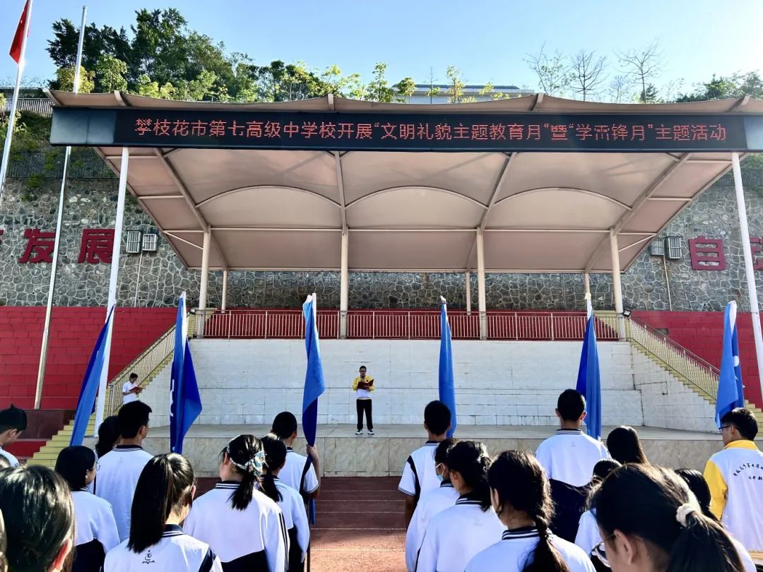市七中举行主题升旗仪式暨“文明礼貌主题教育月”及“学雷锋月”启动仪式