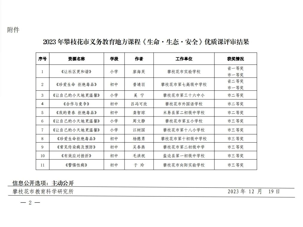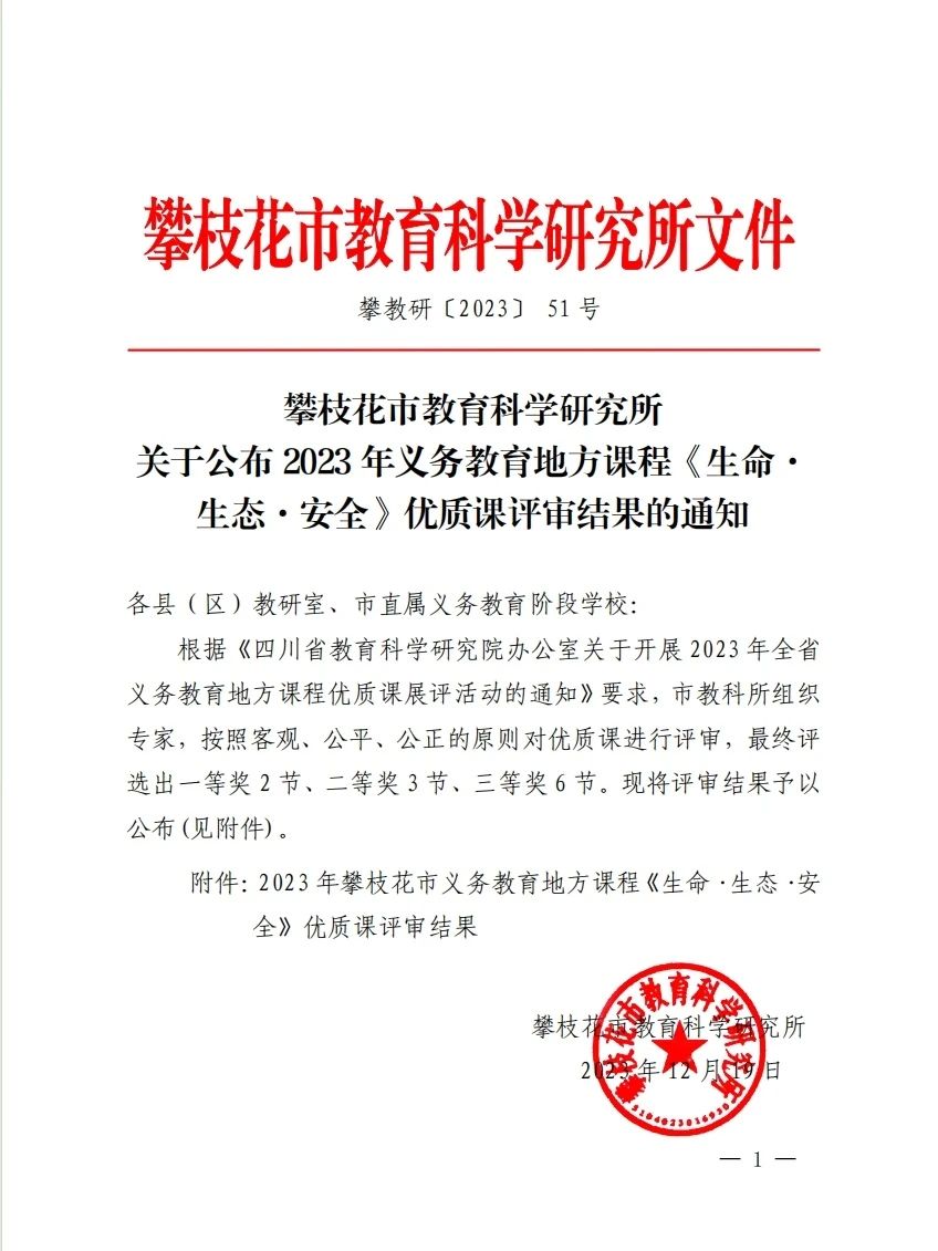 近日,四川省教育科学研究院公布了2023年四川省义务教育地方课程《生命?生态?安全》优质课展评活动的评审结果,我校初中部普靖羽老师设计的《珍爱生命