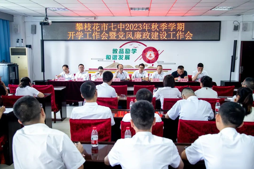 8月28日下午,市七中在花城校区2号楼五楼会议室召开2023年秋季学期开学工作会暨党风廉政建设工作会,部署安排各项开学工作。会议由党委书记杨鸿主持,校领导班子成员及全体中层干部参加会议。