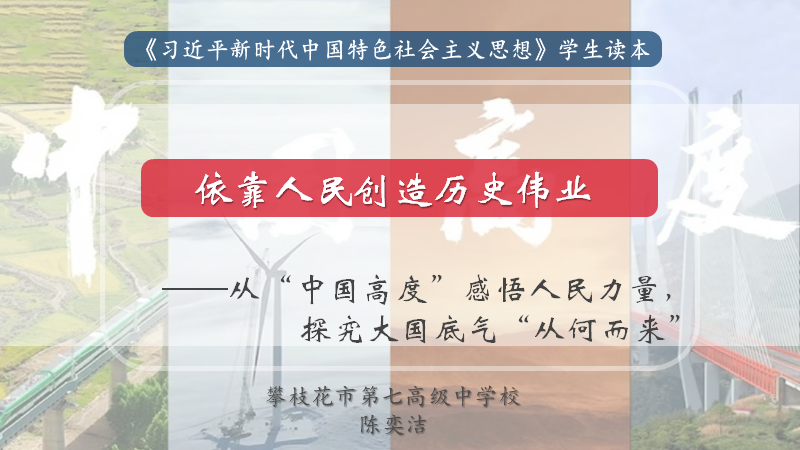 《依靠人民创造历史伟业》课程内容选自《习近平新时代中国特色社会主义思想学生读本》(高中)第四讲第三框。该课围绕总议题“从‘中国高度’感悟人民力量,探究大国底气‘从何而来’”,通过“尊重人民主体地位和首创精神——‘珠峰之网’在世界之巅打通生命信号”、“把群众路线贯彻到治国理政全部活动之中——推动经济高质量发展,助力中国式现代化”以及“大国底气究竟从何而来”三部分开展教学,着力引导学生运用唯物史观和唯物辦证法的基本思想,从联系、发展等角度看待人民群众的主体地位与群众路线的真理性,领悟中国共产党始终坚持以人民为中心的指导思想,积极投身社会主义现代化建设实践,为实现中华民族伟大复兴的中国梦而砥砺奋斗。
