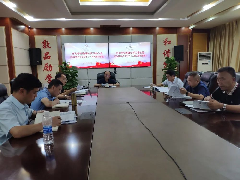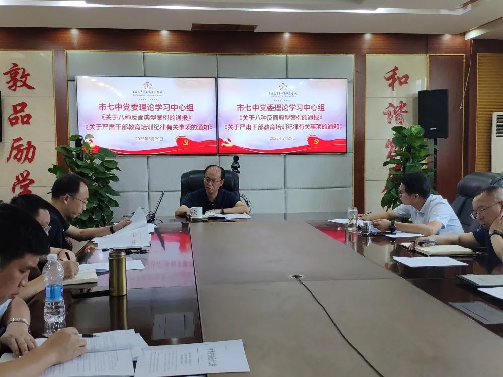 2023年5月29日上午,市七中党委在西城校区召开理论学习中心组学习会议。会议由党委书记杨鸿主持,全体班子成员参加。