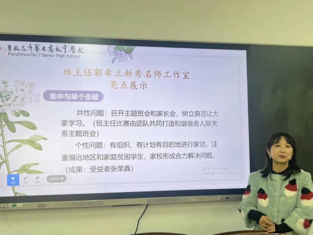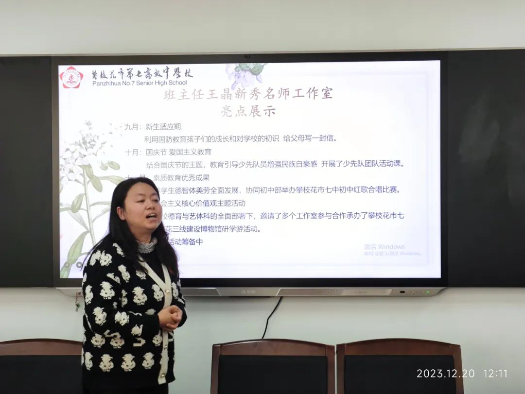 2023年12月20日,攀枝花市教育科学研究所九义室主任李懿莅临我校,对郭希立新秀名师工作室、王晶新秀名师工作室、家校共育韦燕名师工作室的工作进行阶段性的指导与评估。