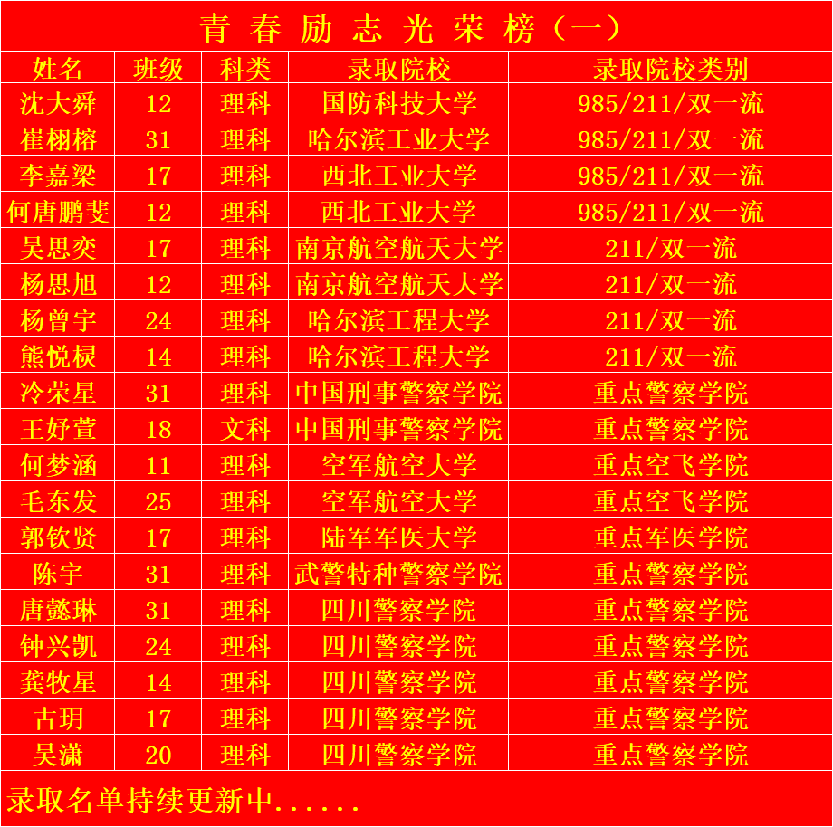 踔厉奋发 把青春热情融入时代洪流——市七中国防、军校、警校录取名单