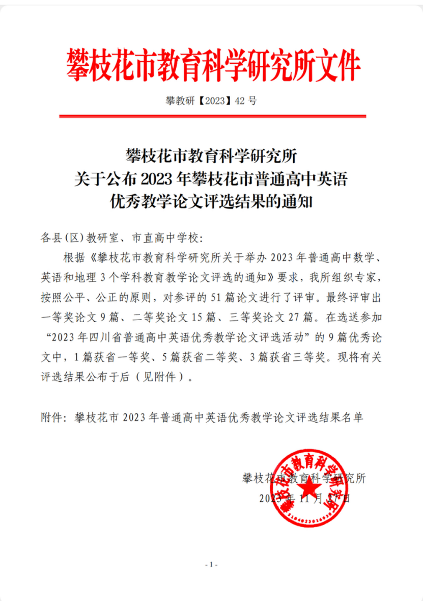 同时我校的雷晓倩,李慧明,罗艳,刘祖林,沈悦,宋瑞,王岚,张荣等老师的论文获评攀枝花市级二等奖、崔盈盈,侯薇,黄婉茨,郭刚,孔丽,谭小琴,汪静等老师的论文获评市级三等奖。