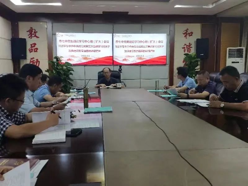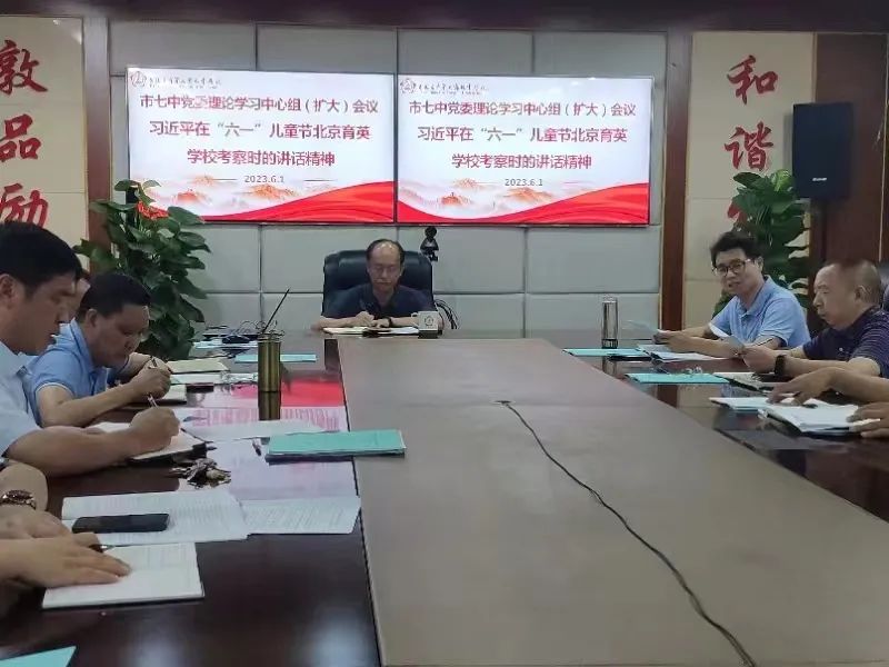 2023年6月1日上午,市七中党委在西城校区博通楼四楼会议室召开理论学习中心组学习会议,学校党委书记杨鸿,党委副书记、校长李刚以及全体领导班子、科室主要负责人参加会议。会议由杨鸿同志主持。