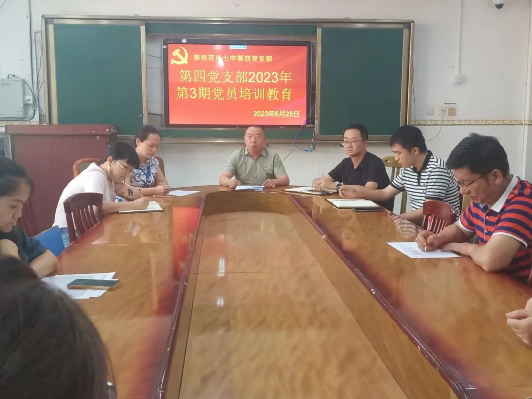 为了深入学习党的二十大报告,提升党员队伍素质,加强新时代党风廉政建设,七中第四党支部于2023年6月25日下午在初中部二楼会议室开展2023年第三期党员培训教育活动,培训活动由第四党支部书记徐子耀主持,校党委委员、副校长阎东出席,第四党支部全体党员同志及初中部部分教师参训。