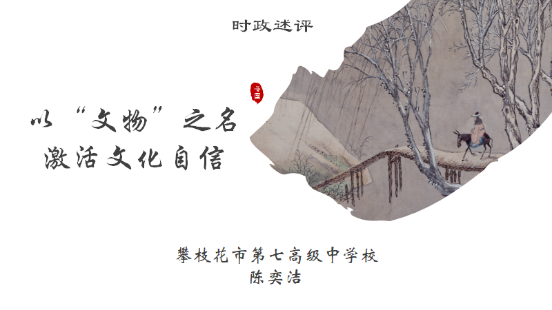 在时政述评部分,陈奕洁老师通过探索近年来兴起的“博物馆热”及“文物热潮”,带领学生明确蕴藏在历史文化遗产中的精神内涵,更好地领会中华民族优秀传统文化的独特魅力,增强中国特色社会主义文化的自觉和自信。引导学生做好文明传承的接班人、勇当文化自信的带头人,以文物之名,激活文化自信。