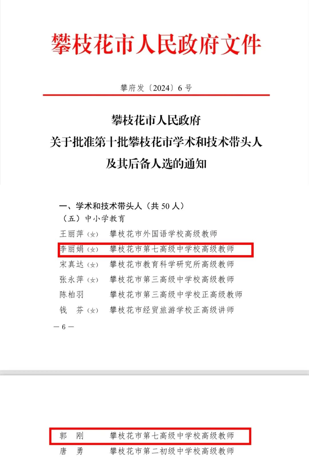 喜报|| 攀枝花市七中六名教师获评第十批攀枝花市学术和技术带头人及其后备人选