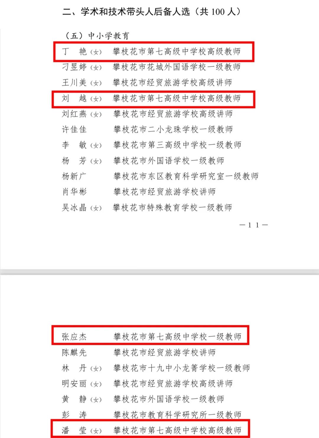 >>喜报|| 攀枝花市七中六名教师获评第十批攀枝花市学术和技术带头人及其后备人选