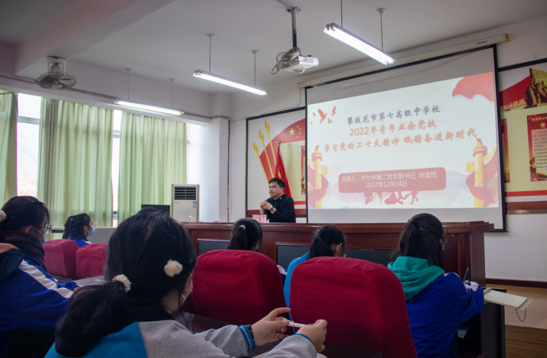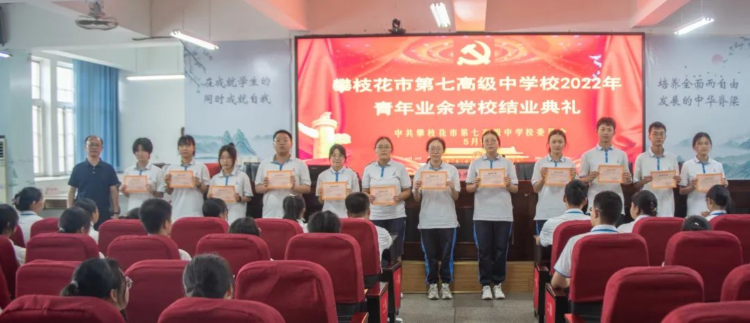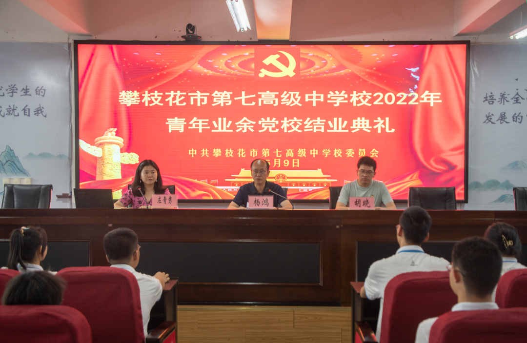 为深入宣传贯彻党的二十大精神,引导青年学生学习党的方针政策,坚定理想信念,感党恩、跟党走,5月9日下午,市七中2022年青年业余党校结业典礼在我校西城校区博通楼二楼会议室举行。学校党委书记杨鸿、业余党校讲师代表胡晓以及56名学员参加典礼。活动由团委书记左青秀主持。