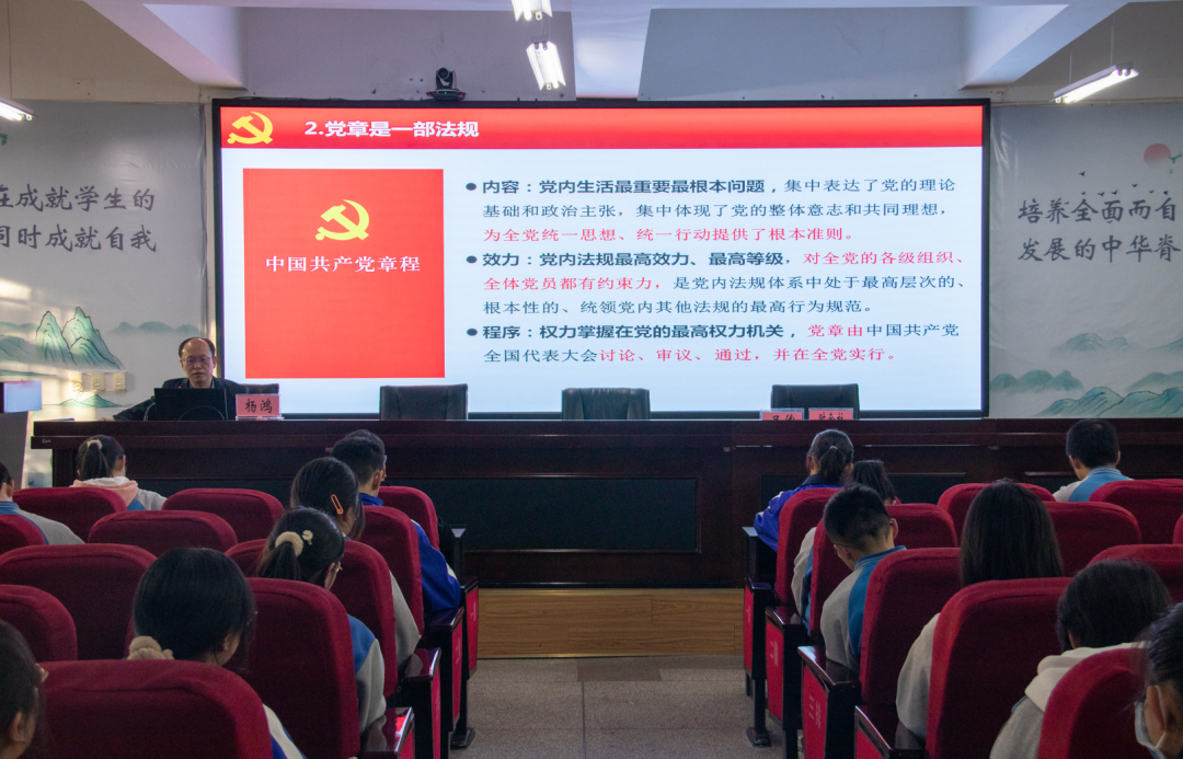 杨鸿书记向全体学员表示祝贺,鼓励学员们要在青春的赛道上奋力奔跑,并针对学员们未来的发展,提出三点希望:一是要坚定理想信念,不忘初心使命,要以革命、建设和改革开放不同历史时期的优秀党员为榜样,厚植爱党、爱国、爱人民的情怀。二是要增强党性修养,培养崇高品格,成为一名党员绝不仅仅是一项荣誉,更是一份责任,要勇担责任、冲锋在前。三是要脚踏实地学习,掌握过硬本领,在学好文化课的同时积极参加各类体育运动和社会实践活动,力争进入一流名校继续学习,将来成为各行各业的优秀人才。
