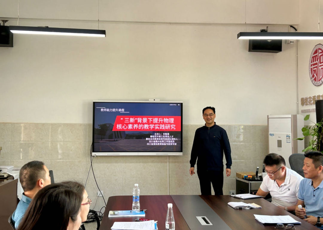 2024年10月17日下午,攀枝花市张敏名师工作室与刘智勇教育专家团队联合市七中高二物理组前往攀枝花爱德实验学校开展新课堂研修活动,工作室成员、市七中高二物理组全体老师、爱德实验学校物理组成员及相关领导参加了本次活动。