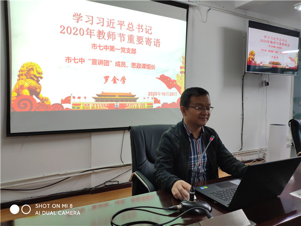 罗金学老师以一位思政课老师的思想认识向全体党员解读了习近平总书记寄语中的重要内涵,他指出:习近平总书记的寄语强调了当前时期我们广大教师的重要任务,那就是确保疫情防控常态化下教育教学工作的正常推进,重点守护学生的身心健康;在决胜全面建成小康社会的重要历史时期,积极发挥教育智慧,切实阻断代际贫困,鼓励广大学子心怀梦想,勇敢走出困境,用知识改变命运。同时习近平总书记还指出了今后教师的使命和任务,主要是不断探索新时代背景下的教育教学方法,投身教育教学改革,不断提升教育教学水平,为培养德智体美劳全面发展的社会主义建设者和接班人而持续努力。